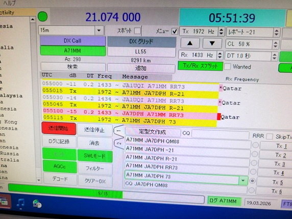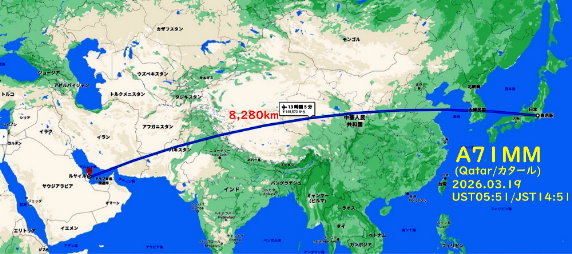 日本とカタールは直線距離で8,280kmあります。戦火ペルシャ湾の中からどの様にして電波を出しているのか詳細は不明ですが、イラン戦争の一日も早い終結と平和を祈ります。