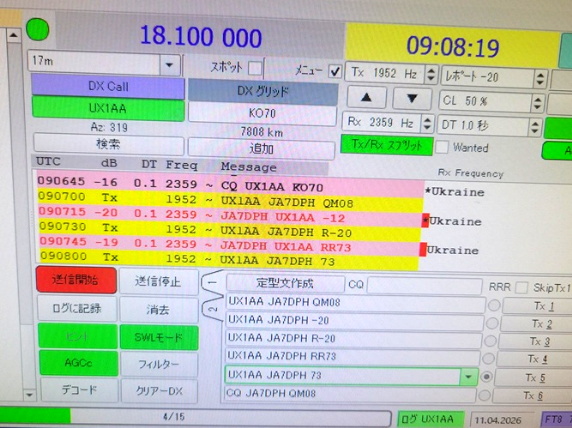 ウクライナ UX1AA局 と再びQSO(交信)
